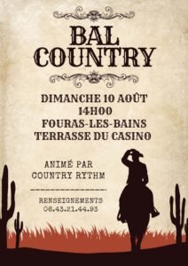 Le Dimanche 10 Aout 2025, Après Midi Bal Country animé par *Country Rythm*, à 14h00, Terrasse du Casino, à Fouras les Bains (17), Charente Maritime.
