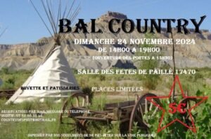 Le Dimanche 24 Novembre 2024, Après Midi Bal Country de 14h00 à 1h00, Salle des Fetes de Paillé (17470), Charente Maritime.