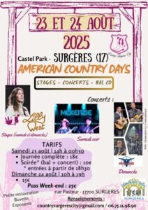 Accueil » Événements » (17) SURGERES / WEEK END AMERICAN COUNTRY DAYS LES 23 ET 24.08.25.