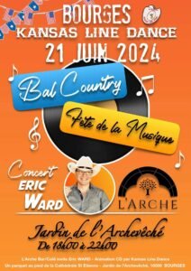 Le Vendredi 21 Juin 2024, Bal Country avec Concert de *Eric Ward*, Jardin de L’Archeveché, de 18h00 à 22h00, à L’Arche Bar Café, à Bourges (18000), Cher.