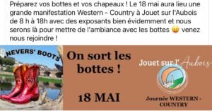 Le Dimanche 18 Mai 2025, Journée Western et Country chez *Nevers’Boots*, de 08h00 à 18h00, à Jouet sur L’Aubois (18320), Cher.