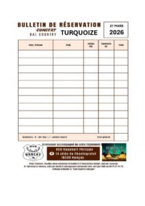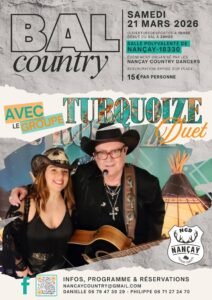 Le Samedi 21 Mars 2026, Bal Country des *Nancay Country Dancers*, à 20h00, avec Concert du Groupe *Turquoise Duet*, Salle Polyvalente de Nancay (18330), Cher.