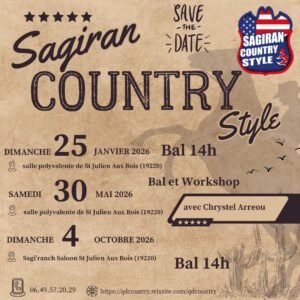 Le Dimanche 04 Octobre 2026, Après Midi Bal Country des *Sagiran Country Style*, à 14h00, Sagi Ranch Saloon, à St Julien aux Bois (19220), Corrèze.