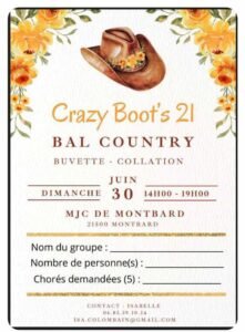 Le Dimanche 30 Juin 2024, Après Midi Country Dance de 14h00 à 19h00, MJC de Montard (21500), Cote D’or.