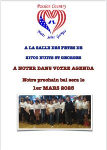 Le Samedi 1er Mars 2025, Bal Country , Salle des Fetes de Nuits st Gorges (21700), Cotes D’Or.