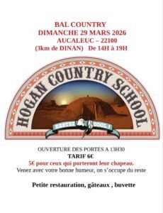 Le Dimanche 29 Mars 2026, Après Midi Bal Country chez *Hogan Country School*, de 14h00 à 19h00, à Aucaleuc (22100), Cotes D’armor .