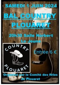 Le Samedi 1er Juin 2024, Bal Country à 20h30, Chez *Country Plouaret*, Salle Norbert Le Jeune, à Plouaret (22420), Cotes D’Armor.