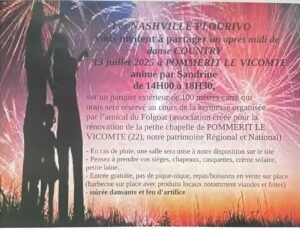 Le Dimanche 13 Juillet 2025, Après Midi Country Dance des *Nashville Plourivo * , animée par *Sandrine*, de 14h00 à 18h30, à Pommerit P