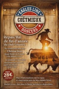 Le Vendredi 05 Juin 2026, Soirée Repas et Bal du Club *EaglesLine Dancers*, au Restaurant Dancing *L’Attraction*, Rond Point du Poirier, à St Alban (224