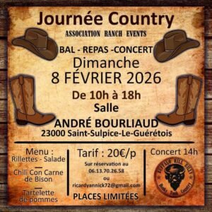 Accueil » Événements » (23) ST SULPICE LE GUERETOIS / JOURNEE COUNTRY LE 08.02.26.