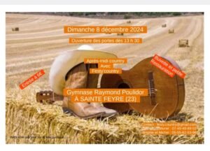 Le Dimanche 08 Décembre 2024, Après Midi Bal Country *Festy Country*, à partir de 13h30, Gymnase Raymond Poulidor, à Ste Feyre (23), Creuse.