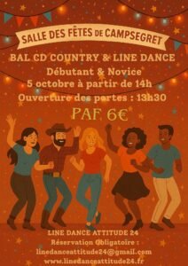 Le Dimanche 05 Octobre 2025, Après Midi Bal Country et Line Dance cd, chez *Line Dance Attitude 24*, à 14h00, Salle des Fetes de Campsegret (24
