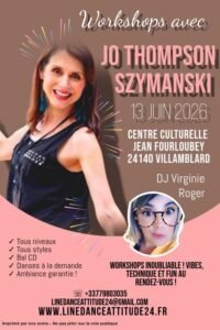 Le Vendredi 13 Juin 2026, Journée Line Dance avec Workshops, Bal cd, Danses à la demande , animée par *DJ Virginie Roger*, au Centre Culturelle Jean Fourloubey, à Villamblard (24140), Dordogne.