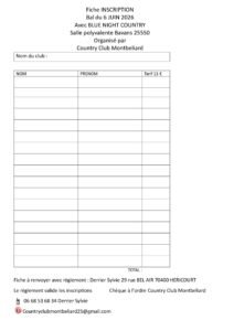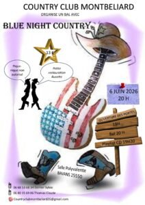Le Samedi 06 Juin 2026, Bal Country des *Country Club Montbeliard*, avec Concert des *Blue Night Country*, à 20h00, Salle Polyvalente de Bavans (25550), Doubs.