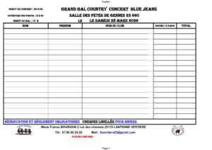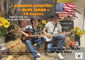 Le Samedi 28 Mars 2026, Bal Country cd à 19h00 et Concert de *Blue Jeans*, à 20h00, Salle des Fetes de Gennes (25660), Doubs.
