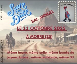 Le Samedi 11 Octobre 2025, Bal Country annuel chez Franch’Country 25*, au CASC de Morre (25), Doubs.