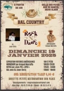 Le Dimanche 19 Janvier 2025, Journée Country chez *Rock N Dance*, animée par *DJ Jean Chris*, avec *Arnaud Marraffa*, à partir de 10h00, Salle des Fetes, rue du Bancel, à Albon (26140), Drome.