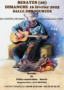 Le Dimanche 16 Février 2025, AM Bal Country Line Dance à partir de 13h30, chez *USC Besayes* , Salle des Sources, à Besayes (26), Drome.
