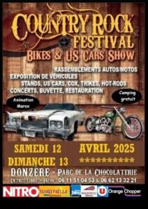 Les Samedi 12 et Dimanche 13 Avril 2025, Country Rock Festival *Bikes & US Cars Show*, Parc de la Chocolaterie, à Donzère (26290), Drome.