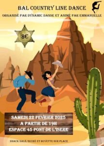 Le Samedi 22 Février 2025, Bal Country Line Dance , animé par *Emmanuelle*, chez *Dynamic Danse*, à 19h00, Espace 45, Pont de L’Isère (266