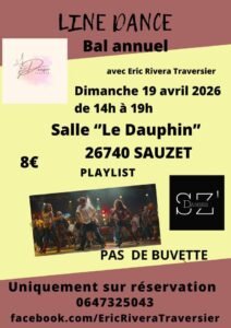 Le Dimanche 19 Avril 2026, Après Midi Bal line Dance annuel , de 14h00 à 19h00, Salle *Le Dauphin*, à Sauzet (26740), Drôme.