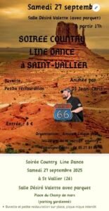 Accueil » Événements » (26) ST VALLIER / SOIREE COUNTRY LINE DANCE LE 27.09.25.