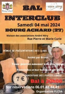 Le Samedi 04 Mai 2024, Bal Country Interclub, à 20h00, Maison des associations André Héry, rue Pierre et Marie Curie, à Bourg Achard (27310), Eure.