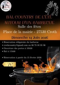 Le Dimanche 14 Juin 2026, Journée Country de L’été, avec Barbecue à partir de 11h00, Salle des Fêtes, Place de la Mairie, à Croth (27530), Eure.