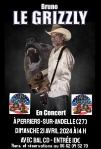 Le Dimanche 21 Avril 2024, Après Midi Country Dance avec Concert de *Bruno le Grizzly*, à 14h00, à Perriers sur Andelle (27910), Eure.