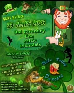 Le Dimanche 29 Mars 2026, Après Midi Bal Country St Patrick, à 14h00, alle PL Lambé, 4 rue du Lannec, à Brest (29200), Finistère .