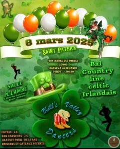 Le Samedi 08 Mars 2025, Bal Country Line Celtic Irlandais pour la St Patrick chez *Mill’s Valley Dancers*, à partir de 20h00, Salle Pl.Lambé, 4 rue du Lannoc, à Brest (2