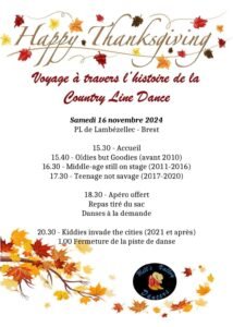 Accueil » Événements » (29) BREST / JOURNEE COUNTRY LINE THANSKGIVING LE 16.11.24.