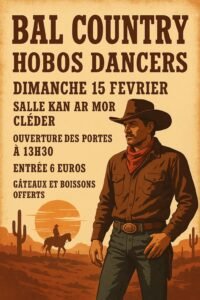 Le Dimanche 15 Février 2026, Après Midi Bal Country des *Hobos Dancers*, à 13h30, Salle Kan Ar Mor, à Cléder (29233), Finistère.