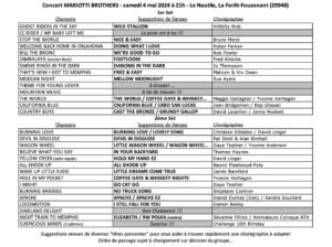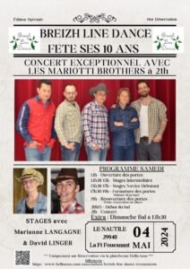 Le Samedi 04 Mai 2024, Journée Country à partir de 13h00, pour les 10 ans du Club, avec Stages et Concert des *Mariotti Brothers* , Le Nautile,à La Foret Fouesnant (29940), Finistère.