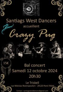 Le Samedi 12 Octobre 2024, Bal Country avec Concert de *Crazy Pug*, à 20h30, Le Triskell, rue Mstilav Rostropovitch, à Pont L’Abbé (29210), Finistère.