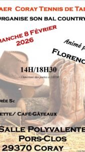 Le Dimanche 08 Février 2026, Après Midi Bal Country à 14h00, Salle Polyvalente de Pors Clos Coray (29), Finistère.