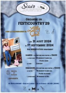 Les Samedi 31 Aout et Dimanche 1er Septembre 2024, Week End Festicountry’29, avec *Lilly West*, au Boulodrome, Base de Loisirs, rue du Haras, à Scaer (2