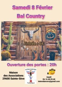 Le Samedi 08 Février 2025, Bal Country à 20h00, Chez *Totem Dancers *, Maison des Associations, à Ste Sève (29600), Finistère.