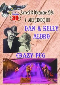 Le Samedi 14 Décembre 2024, Journée Country avec *Dan & Kelly Albro* et Concert de *Crazy Pug*, Chez *Texas 30*, à Ales (30100), Gard.