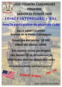 Accueil » Événements » (30) CAISSARGUES / SOIREE INTERCLUBS ET BAL COUNTRY LE 21.02.26.