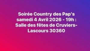 Le Samedi 04 Avril 2026, Soirée Country des *Pap’s*n à 19h00, Salle des Fetes de Cruviers Lascours (30360), Gard.