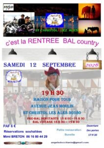 Le Samedi 12 Septembre 2026, Bal Country à 19h30, Maison pour tous ,Avenue Jean Moulin, à St christol les Ales (30380), Gard.