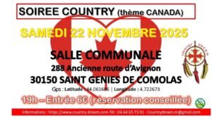 Accueil » Événements » (30) ST GENIES DE COMOLAS / SOIREE COUNTRY LE 22.11.25.