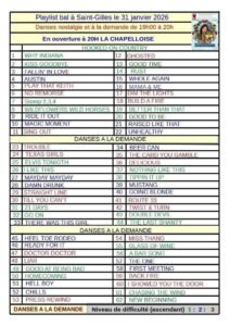 Le Samedi 31 Janvier 2026, Bal Country cd chez *Les Bottés St Gillois*, à 20h00, Salle Polyvalente, Allées Gazelles à St Gilles (30800), Gard.