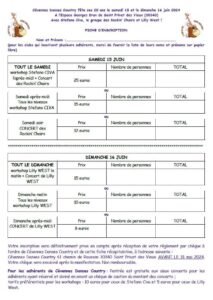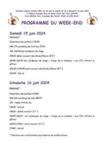 Les 15 et 16 Juin 2024, Week End Country Music et Dance, pour les 15 ans du Club, avec Workshops et Concerts de *Lilly West* et *Rockin’ Chairs*, Espace Georges Brun, 10, rue des Muriers, à St Privat des Vieux  (3