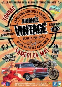 Le 04 Mai 2024, Le Foyer Rural de la Région de Tornac (30) organise pour sa deuxième édition sa Journée Vintage de Rassemblement de Véhicules Anciens .