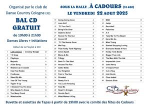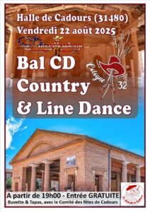 Le Vendredi 22 Aout 2025, Bal Country et Line Dance cd à 19h00, Halle de Cadours (31480), Haute Garonne.
