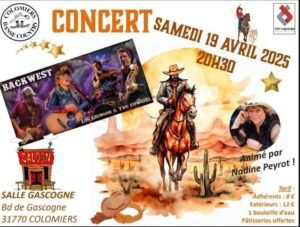 Le Samedi 19 Avril 2025, Bal Country animé par *Nadine Peyrot* avec Concert , des *Backwest*, à 20h30, Salle Gascogne, Boulevard de Gascogne, à Colomiers (31770), Haute