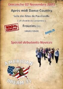 Le Dimanche 02 Novembre 2025, Après Midi Country Dance chez *American Dream 31* , de 14h00 à 18h00, Salle des Fetes de Paucheville, 19 Chemin de Lamartine, à Frouzins (31), Haute G