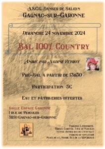Accueil » Événements » (31) GAGNAC SUR GARONNE / APRES MIDI BAL 100% COUNTRY LE 24.11.24.